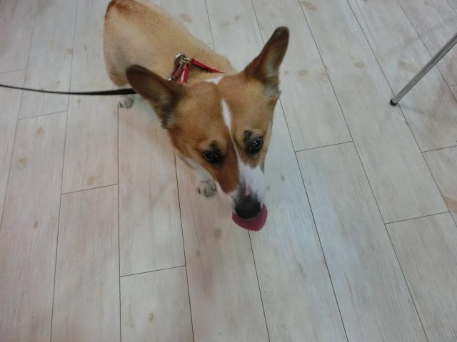 お泊りしてる コーギーの ショコラちゃん emoji