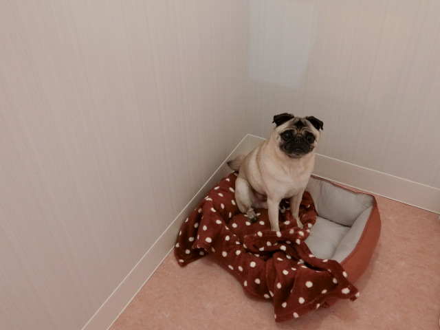 お泊りしてる パグの ショコラちゃん emoji