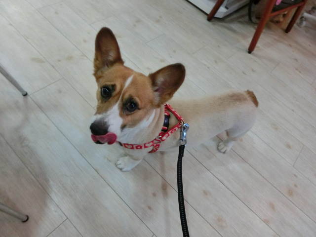 お泊りしてる コーギーの ショコラちゃん emoji