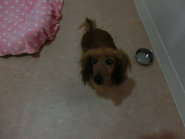 お泊りしてた M・ダックスの ポッキーちゃん emoji