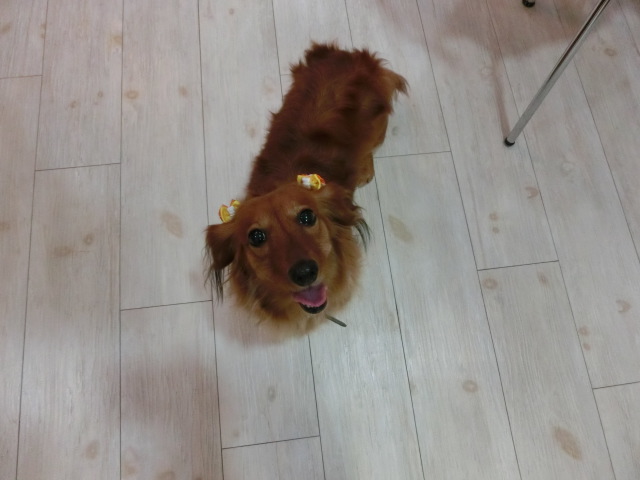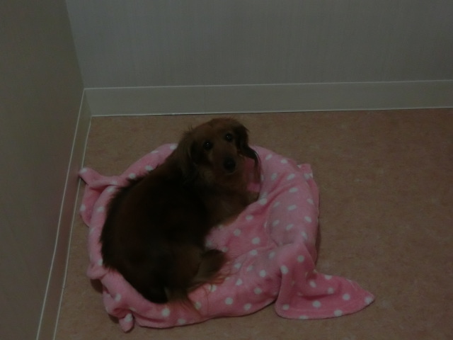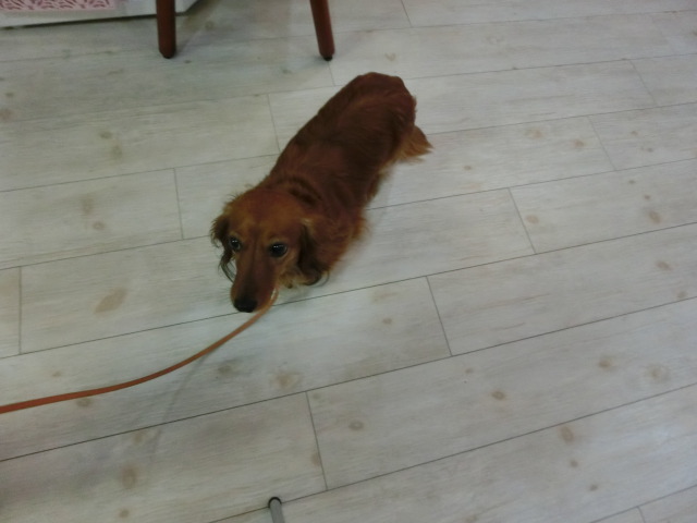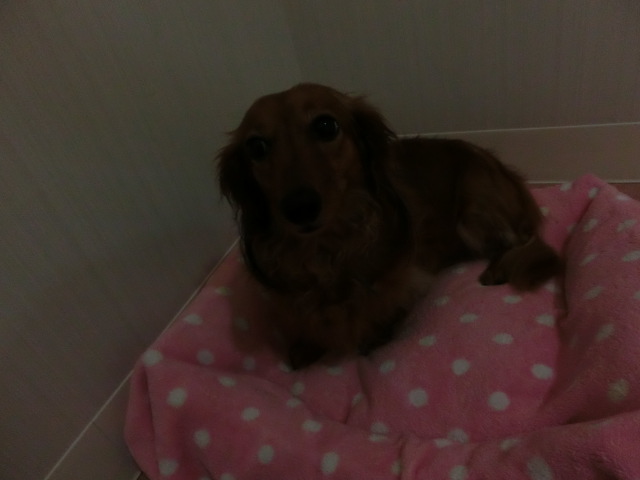 お泊りしてる M・ダックスの リリーちゃん emoji