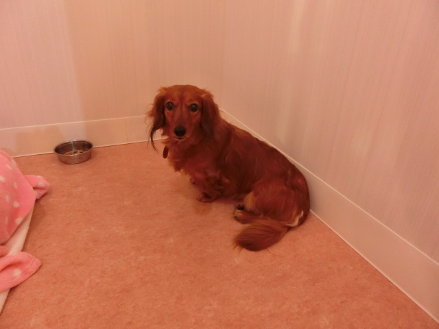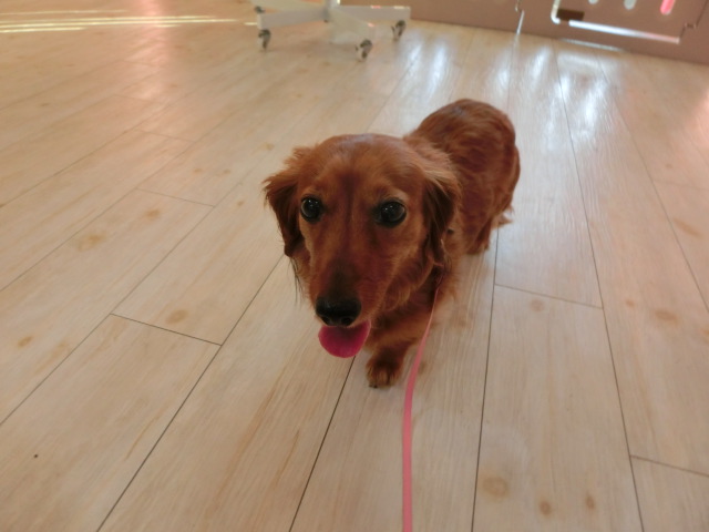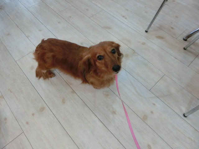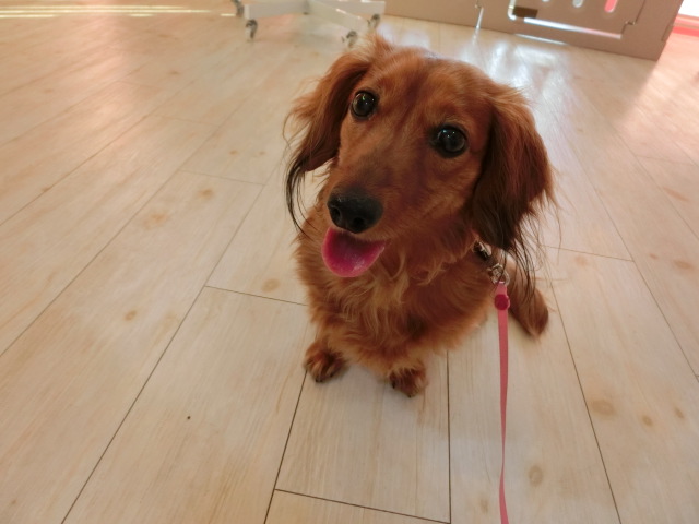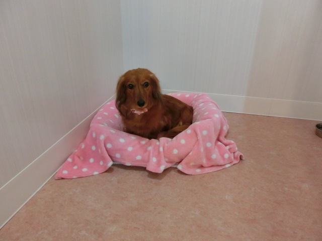 お泊りしてる M・ダックスの モモちゃん emoji
