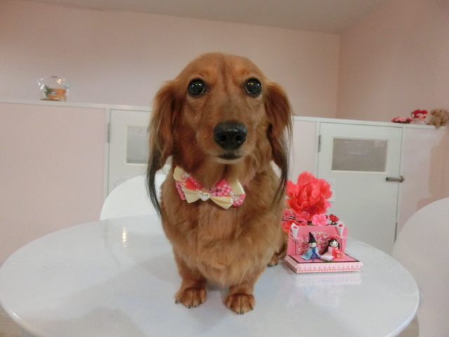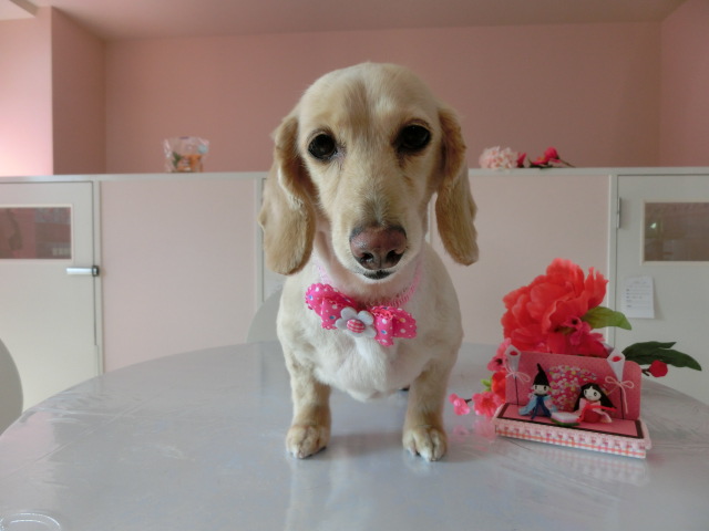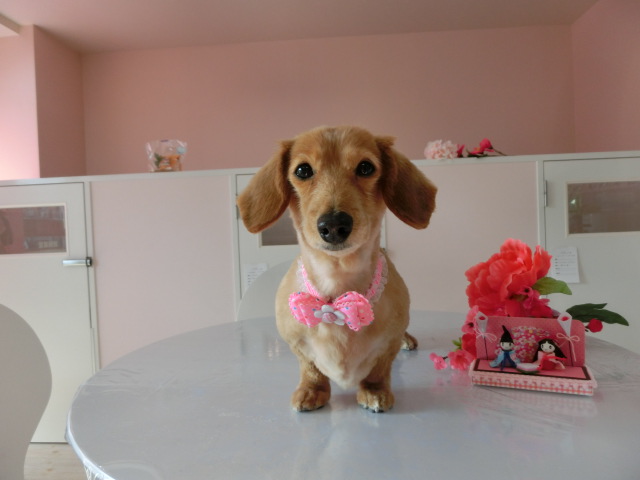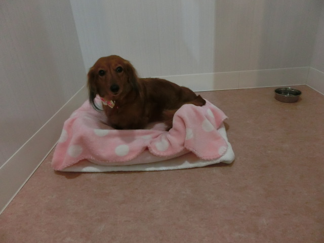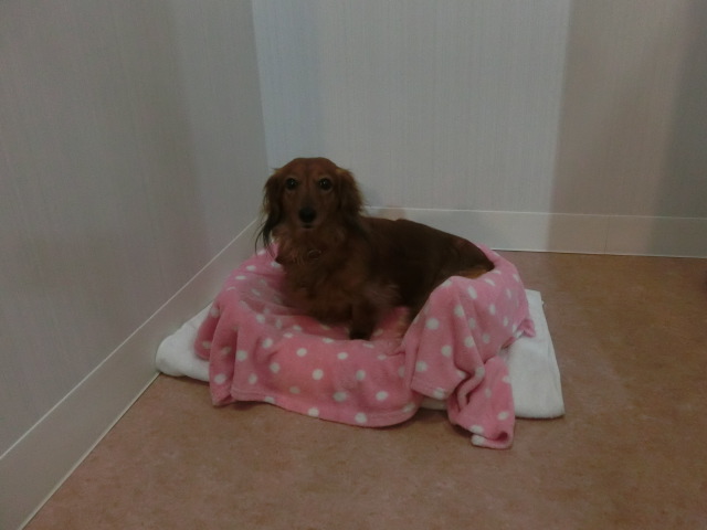 お泊りしてる M・ダックスの モモちゃん emoji