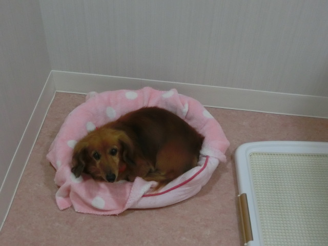 お泊りしてる M・ダックスの ポッキーちゃん emoji
